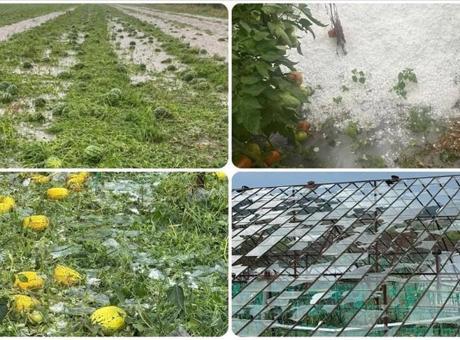 Doludan ve su baskınından seralardaki ekili domates, kavun, biber gibi ürünler ile açık alanda hasadına hazırlanılan karpuzlar zarar gördü.