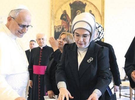 Görüşmede, Gazze'de yaşanan insanlık dramı, iklim değişikliğine karşı mücadele çabaları, İslamofobi ve ırkçılığa karşı mücadele ile ailenin toplumdaki varlığının önemi konuları ele alındı. Görüşmede, İsrail saldırısı ve ablukası altındaki Gazze'de yaşanan insanlık dramının üzerinde durulurken, Emine Erdoğan, kalıcı ateşkes ve insani yardımların ulaştırılması için Papa'ya "Gazze konusunda Hristiyan dünyası daha gür sesle destek çıkmalı" çağrısı yaptı. Papa 14. Leo'nun da Emine Erdoğan'a, Vatikan'ın uzun yıllardır Ortadoğu'daki çözümün bir parçası olma ilkesine göre hareket ettiğini söylediği ve Vatikan'ın da Filistin'de iki devletli çözümü ve barışı desteklediğini söylediği öğrenildi. ? AA