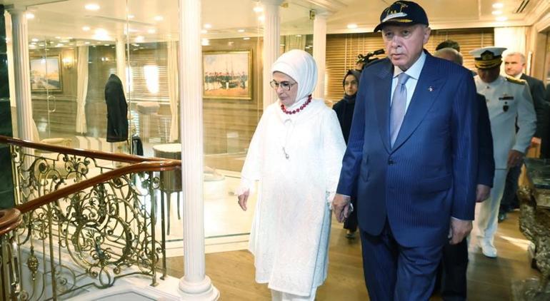 İstanbul Tersanesi Komutanlığı'nda TEKNOFEST Mavi Vatan coşkusuna ortak olmaktan mutluluk duyduğunu belirten Erdoğan, "Ülkemizin Milli Teknoloji Hamlesi vizyonunun denizlerimizdeki yansıması olan bu büyük festivalin hayırlara vesile olmasını diliyorum. Programın ardından yeniden maviliklerle buluşan Savarona Yatı'nı ziyaret ettik. Tarihimize ve Mavi Vatan'a kazandırılan bu değerde emeği geçen herkese şükranlarımı sunuyorum. Ülkemizin denizlerdeki gücünün büyüyerek devam etmesini temenni ediyorum." ifadelerini kullandı.