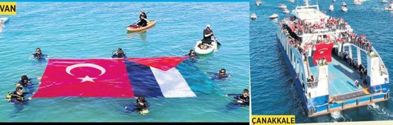 | Çevrimiçi ![]() ![]() ![]() | Meydanlar Gazze için doldu ![]() İstanbul'da Ayasofya Camii önünde toplanan grup, filoyla dayanışma amacıyla "Özgürlüğe Yürüyoruz" çağrısıyla Eminönü'ne yürüdü. Etkinlik kapsamında Eminönü Meydanı'nda konuşmalar yapıldı. Ankara'da da binlerce kişi dün Melike Hatun Camii önünde toplandı. Ulaştırma ve Altyapı Bakanı Abdulkadir Uraloğlu, bazı milletvekilleri ile Ankara Valisi Vasip Şahin de yürüyüşe katılarak destek verdi. İçişleri Bakanı Ali Yerlikaya, kalabalık yürüyüş ile ilgili sosyal medya hesabı üzerinden paylaşımda bulundu. Yerlikaya, "Bugün Ankara'da 300 bin vicdan yerinden doğrulup ayağa kalktı" ifadesinikullandı. ![]() EYLEMLER KARADAN DENİZE TAŞTI ? İzmir'de yedi noktadan çok sayıda tekne, "Kararlıyız, Sumud'un Yanındayız" etkinliğinde denize açıldı. Pasaport İskelesi'nde bir araya gelen tekneleri Cumhuriyet Meydanı'nda toplanan vatandaşlar karşıladı. ? Çanakkale'de Türk ve Filistin bayraklarıyla donatılan gemi ve tekneler, Çanakkale Yat Limanı ve GESTAŞ'a ait iskeleden boğaza açılarak tur attı. İskeleye ve Kordon Boyu'na gelen vatandaşlar da deniz araçlarını sloganlar eşliğinde karşıladı. ? Adana'da da Karataş Limanı'nda etkinlik düzenlendi. Balıkçılar, gemi ve teknelerle Akdeniz'e açıldı. ? Van'da da vatandaşlar tekne ve kanolarla Van Gölü'ne açıldı, dalgıçlar da göle dalarak Türk ve Filistin bayrakları açtı. Kaynak ; Milliyet |