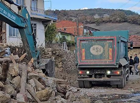 SINDIRGI'DA AĞIR HASARLI YAPILARIN YIKIMI SÜRÜYOR